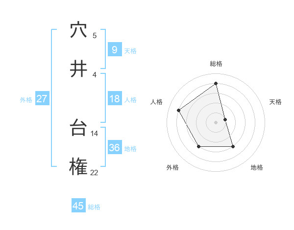 穴井 台権さんの総格は45画の4点!