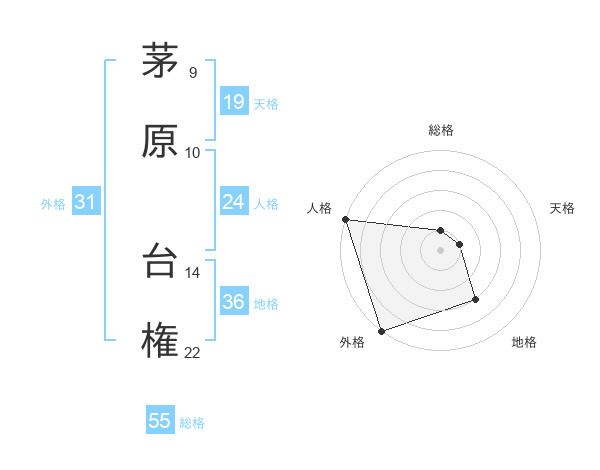 茅原 台権さんの総格は55画の1点!