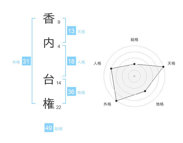 香内 台権さんの総格は49画の2点!