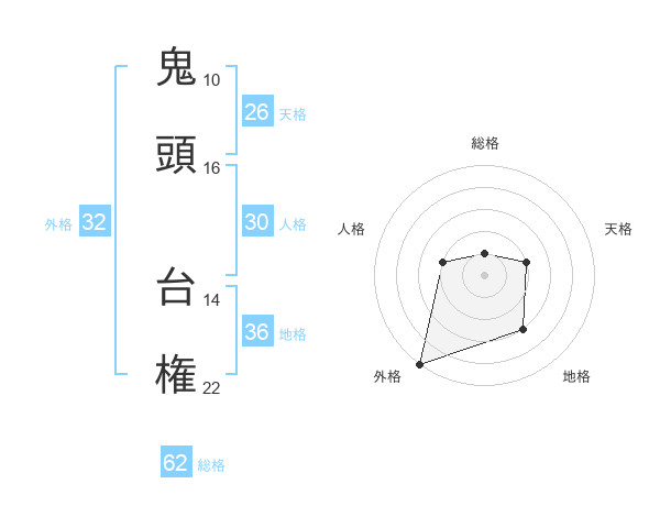 鬼頭 台権さんを姓名の画数から五運を鑑定