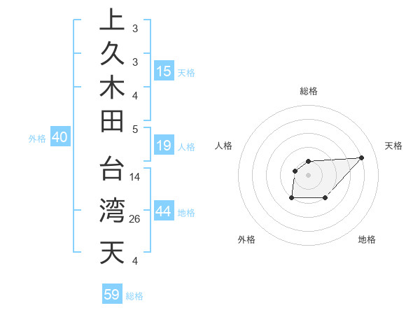上久木田 台湾天さんを姓名の画数から五運を鑑定