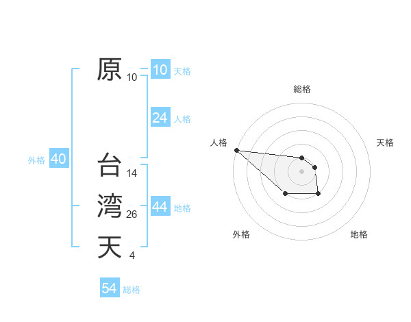 原 台湾天さんの総格は54画の1点!