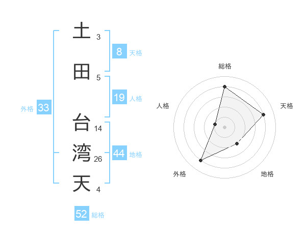 土田 台湾天さんを姓名の画数から五運を鑑定