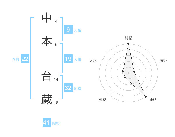 中本 台蔵さんの総格は41画の5点!