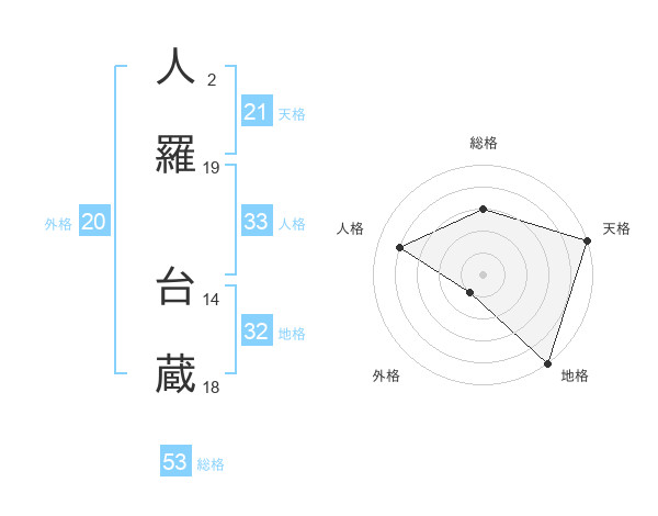 人羅 台蔵さんの総格は53画の3点!