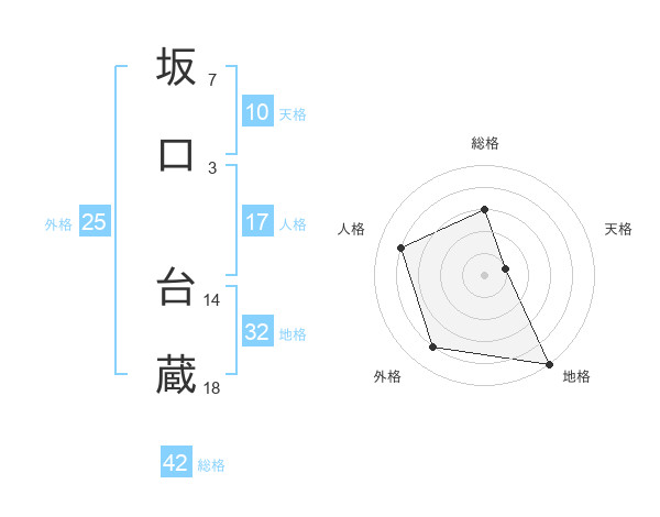 坂口 台蔵さんの総格は42画の3点!