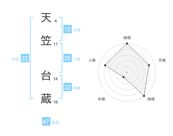 天笠 台蔵さんを姓名の画数から五運を鑑定