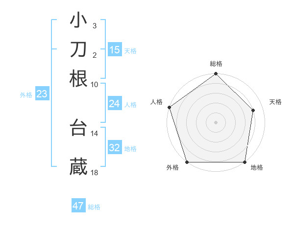 小刀根 台蔵さんを姓名の画数から五運を鑑定