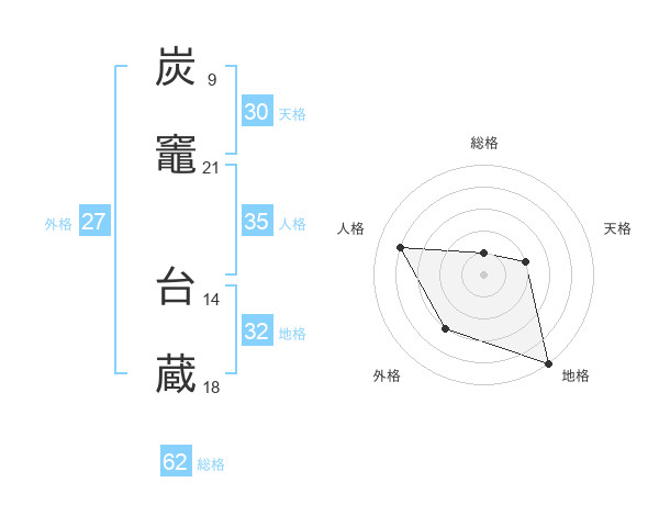 炭竈 台蔵さんを姓名の画数から五運を鑑定