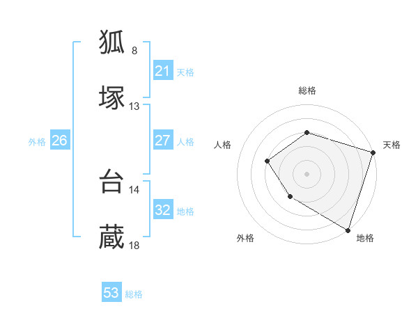 狐塚 台蔵さんの総格は53画の3点!