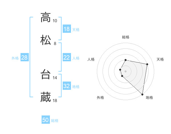 高松 台蔵さんを姓名の画数から五運を鑑定