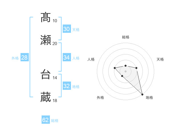 髙瀬 台蔵さんを姓名の画数から五運を鑑定