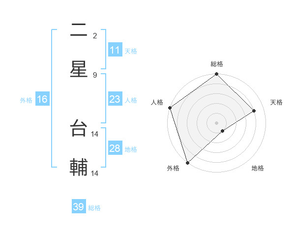 二星 台輔さんの総格は39画の5点!