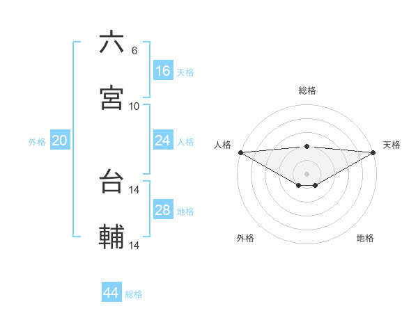 六宮 台輔さんの総格は44画の2点!