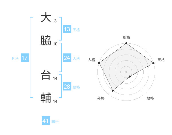 大脇 台輔さんの外格は17画の4点!