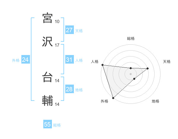 宮沢 台輔さんを姓名の画数から五運を鑑定
