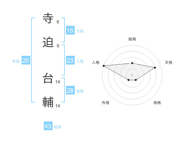 寺迫 台輔さんの総格は43画の2点!