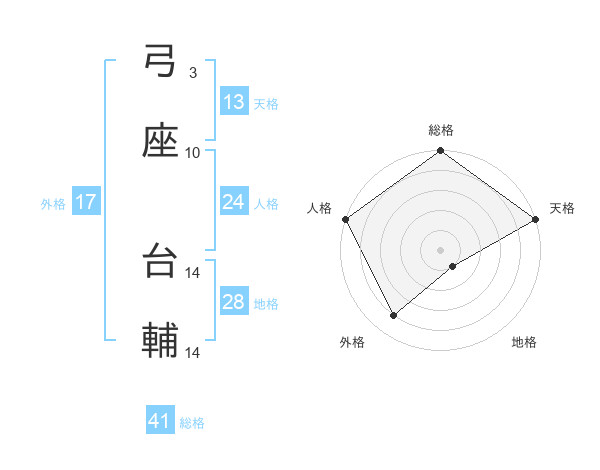 弓座 台輔さんの外格は17画の4点!
