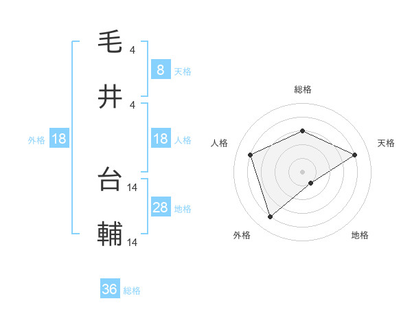 毛井 台輔さんの天格は8画の4点!