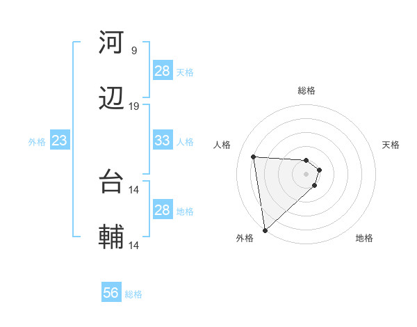 河辺 台輔さんの外格は23画の5点!