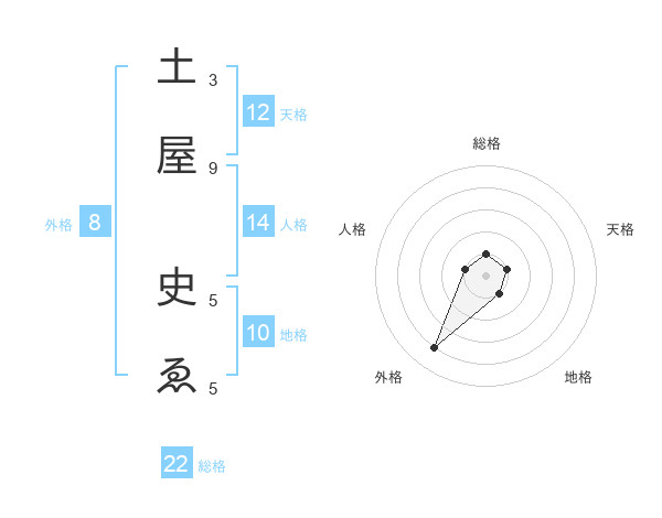 土屋 史ゑさんを姓名の画数から五運を鑑定