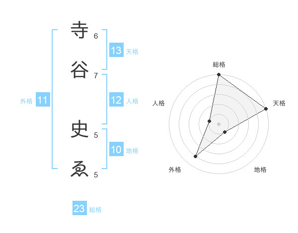 寺谷 史ゑさんの天格は13画の5点!
