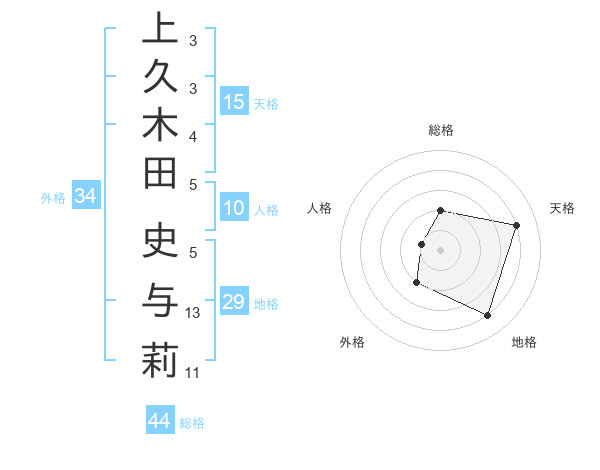 上久木田 史与莉さんを姓名の画数から五運を鑑定