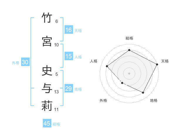 竹宮 史与莉さんを姓名の画数から五運を鑑定