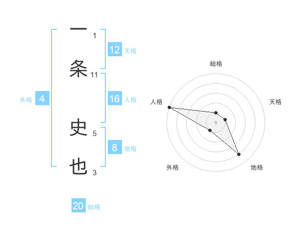 一条 史也さんの総格は20画の1点!