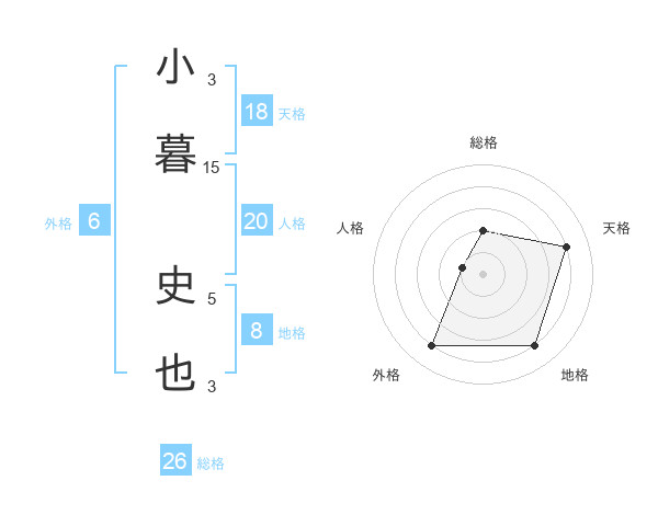 小暮 史也さんの総格は26画の2点!
