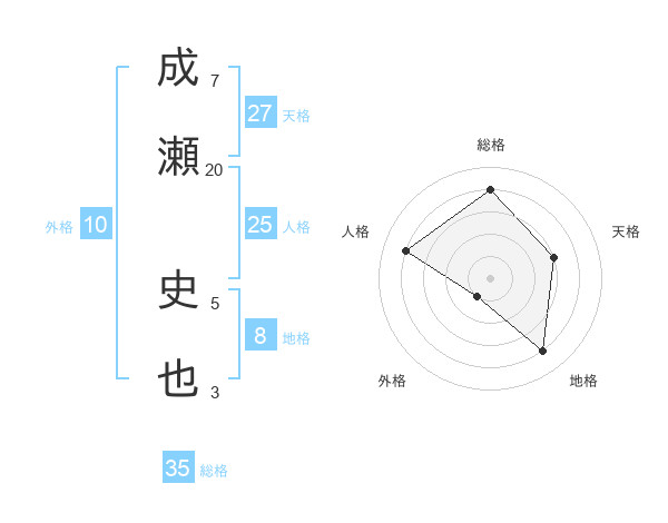 成瀬 史也さんの総格は35画の4点!