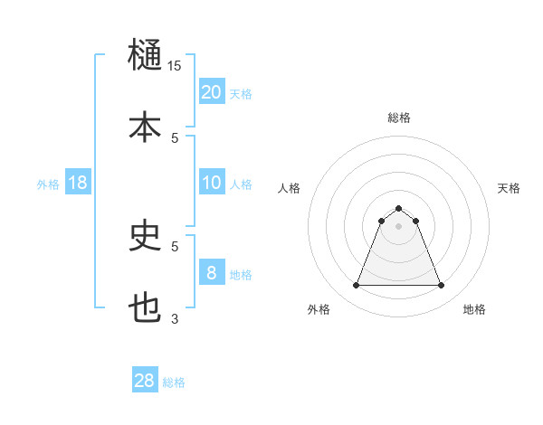 樋本 史也さんの総格は28画の1点!