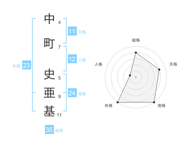 中町 史亜基さんを姓名の画数から五運を鑑定