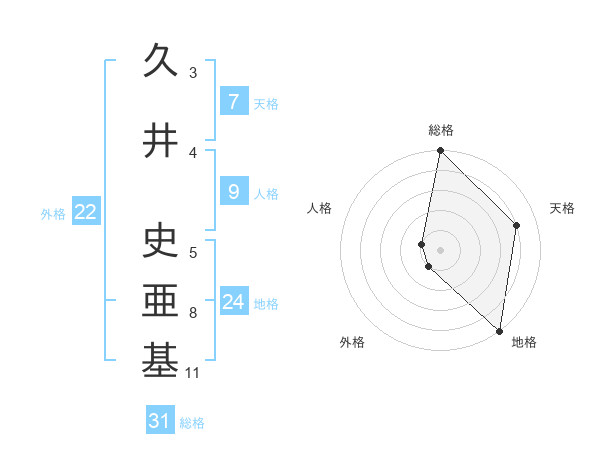 久井 史亜基さんを姓名の画数から五運を鑑定