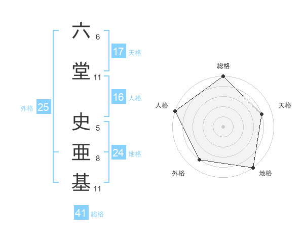 六堂 史亜基さんの天格は17画の4点!