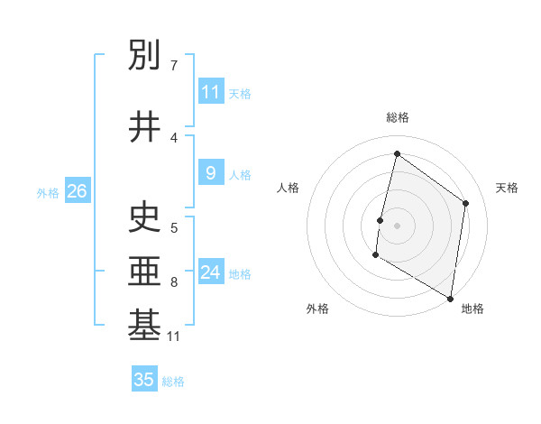 別井 史亜基さんの総格は35画の4点!