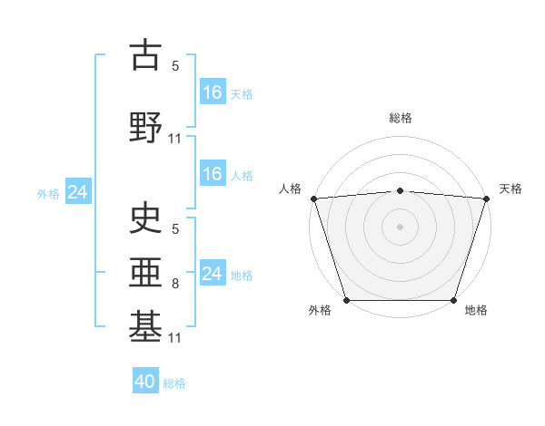 古野 史亜基さんを姓名の画数から五運を鑑定