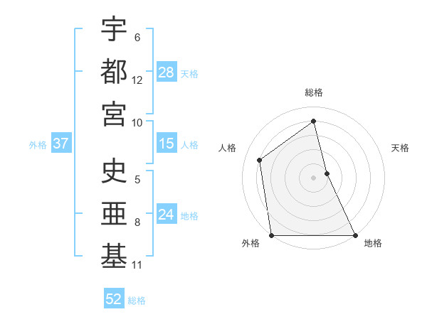 宇都宮 史亜基さんを姓名の画数から五運を鑑定