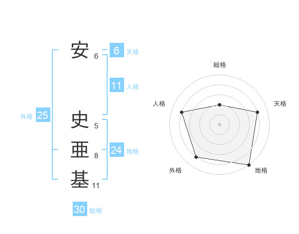 安 史亜基さんの総格は30画の2点!
