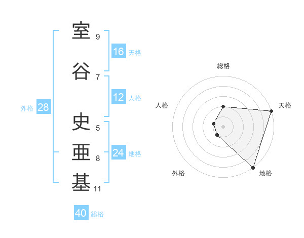 室谷 史亜基さんの総格は40画の2点!