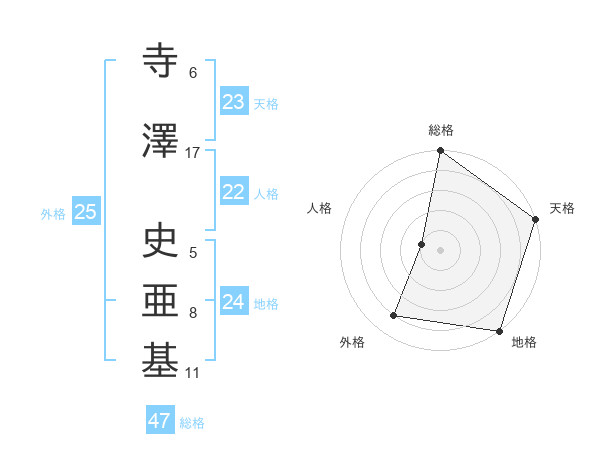 寺澤 史亜基さんの総格は47画の5点!