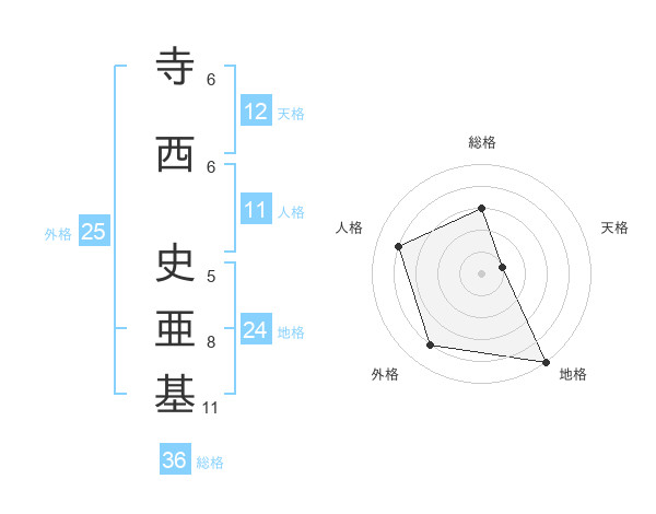 寺西 史亜基さんの天格は12画の1点!