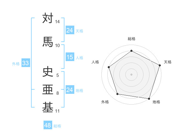 対馬 史亜基さんを姓名の画数から五運を鑑定
