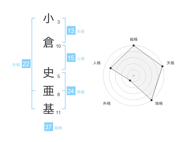 小倉 史亜基さんを姓名の画数から五運を鑑定