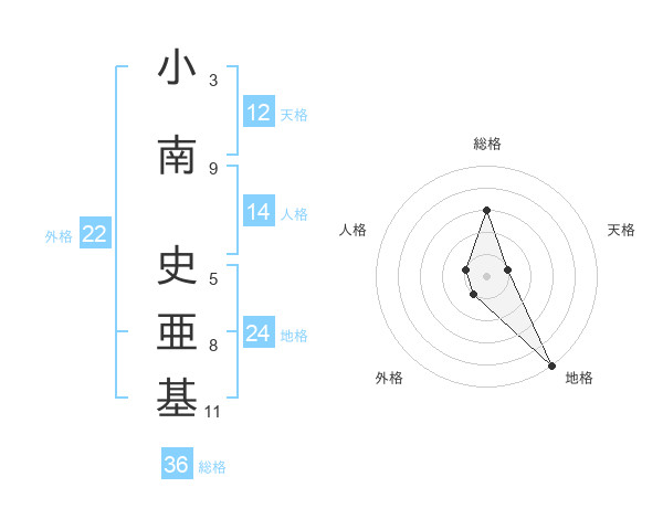 小南 史亜基さんを姓名の画数から五運を鑑定