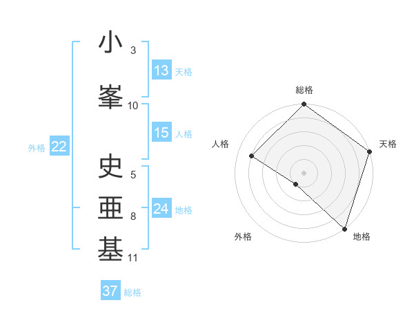小峯 史亜基さんを姓名の画数から五運を鑑定