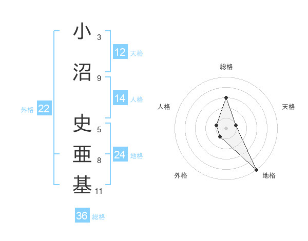 小沼 史亜基さんの天格は12画の1点