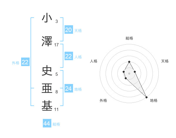 小澤 史亜基さんを姓名の画数から五運を鑑定