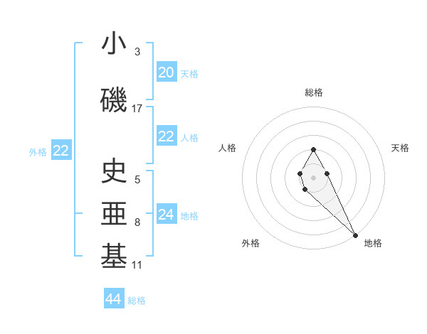 小磯 史亜基さんの外格は22画の1点!
