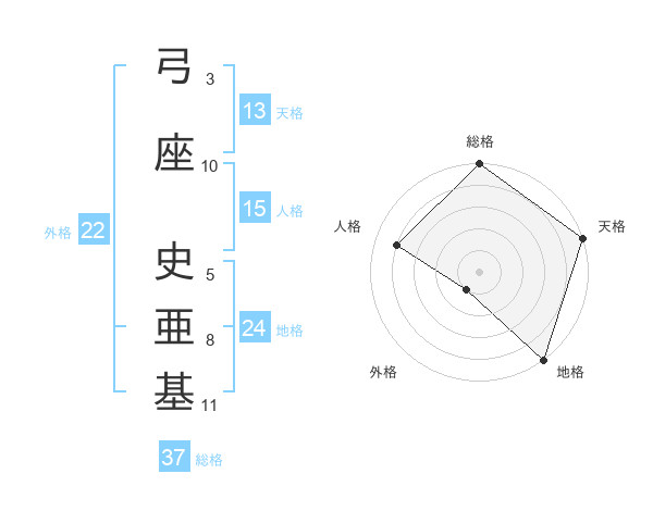 弓座 史亜基さんの総格は37画の5点!